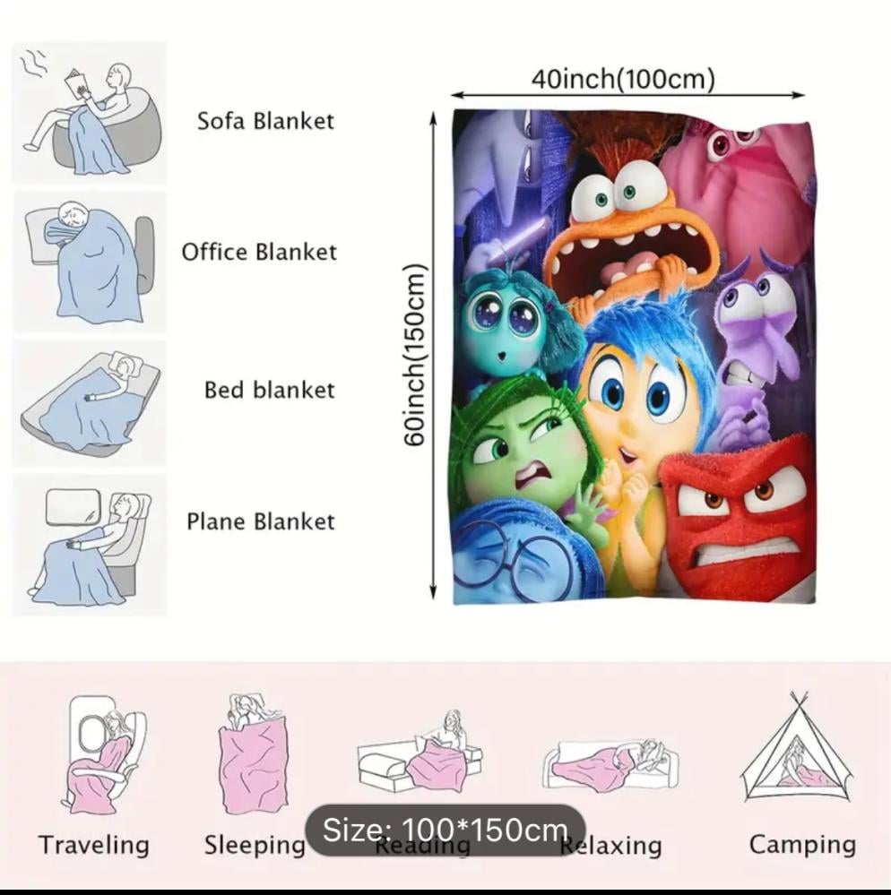 إذا كنتِ تبحثين عن بطانية خفيفة للكنب تجمع بين الأناقة والتصميم المرح فأنتِ في المكان الصحيح بطانية انسايد اوت مستوحاة من الشخصيات العاطفية الشهيرة التي تحمل مشاعر الفرح، الحزن، والغضب استمتعي بلحظات دافئة ومميزة مع لمسة من السحر والذكريات الجميلة.